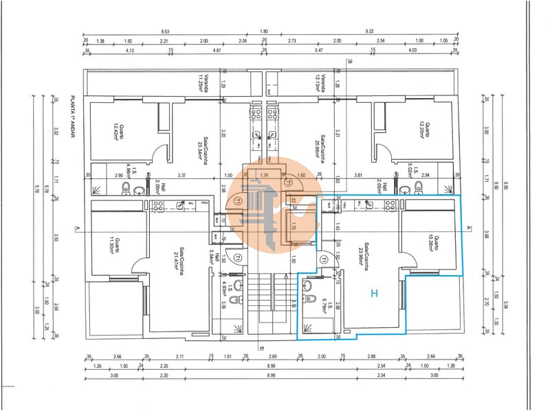 T1 de obra nova no coração da cidade - Fração H / 1º andar / Orientação Nascente/Norte