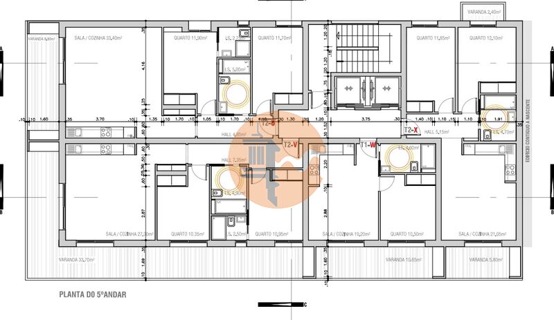Caixilharia em alumínio com corte térmico, assegurando isolamento térmico e acústico.
