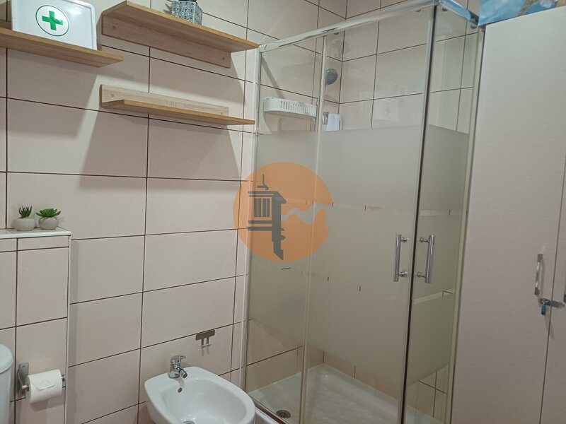 Makuuhuoneessa on vaatekaappi ja ilmastointi, mikä takaa mukavuuden. Kylpyhuone on tilava ja siinä on suihkupohja (poliban).