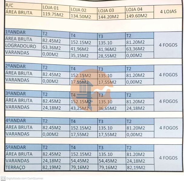 20 apartamentos (T2, T3 e T4) de áreas generosas